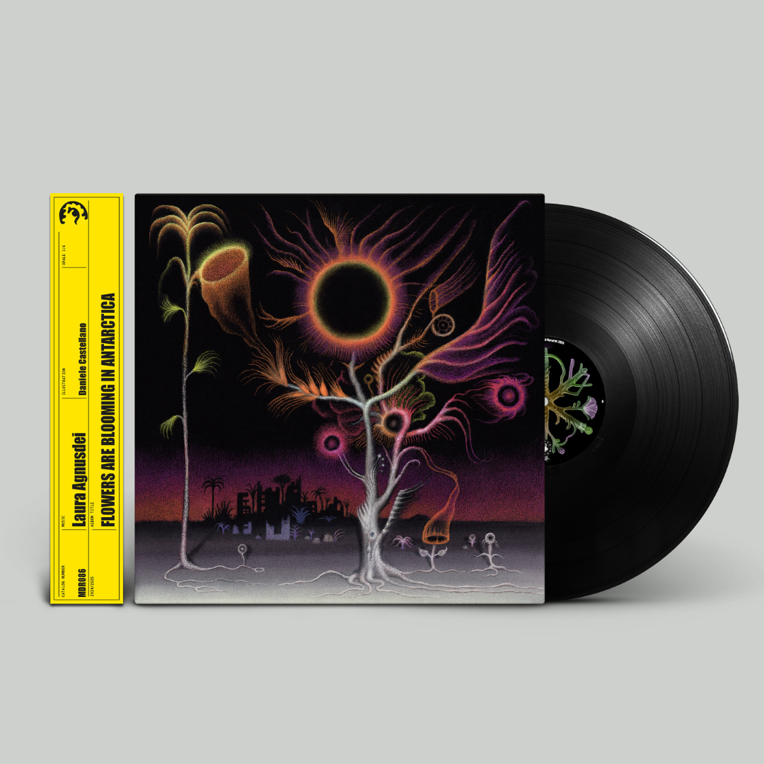 “Flowers Are Blooming In Antarctica” is the first release of Opale, a series curated by Maple Death and publishing house Canicola Edizioni, sister imprints that for last decade have been exploring and researching the intersection of music and narrative through images and sound, giving life to new dialogues between the two languages, with a visionary and militant approach. Each Opale release will see the parallel production of an LP and illustrated book, linked together by a red thread that runs through atmospheres, emotional temperatures, glimpses of content, and collected in a precious limited edition box set that include posters and unique designs. Laura Agnusdei’s album is accompanied by artwork, images and an illustrated book by Daniele Castellano, member of the Ufficio Misteri collective and acclaimed illustrator for film, music and published internationally (Atlantic, New Yorker, New York Times). Inspired by Agnusdei’s sounds, Castellano reworked the album’s themes and narrative into images, giving them a vivid and intense drawn form.