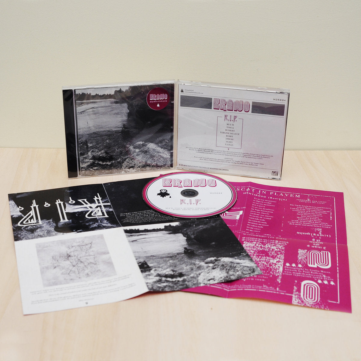 Rescued from the shores of the Piave river, Maple Death Records is proud to present Krano’s debut album, Requiescat In Plavem, a psychedelic country masterpiece coming from an Italian true original. In 2012 Mr. Krano hauled up in the hills behind Valdobbiadene, with a Tascam 388 tape machine, determined to leave his past behind him, a lonely man with a mission: give something back to the region that had given him birth by rediscovering the Veneto dialect as a language and by giving it dignity and a voice outside the normal boundaries it has always been confined to. Birds watched and whistled night and day as our man recorded R.I.P. and weaved stories centered around the Plavem, the Piave river that flows from the Alps to the Adriatic sea and carries the ghosts and battles of World War I, the bloody stage for the last failed major Austro-Hungarian attack on the Italian Front. R.I.P. swirls and rolls, replicating the beauty, wilderness, history and fever of the Prosecco fueled valley. A lone rider singing about loss, love, money and friendship is the foundation for an album that goes from honky-tonk detuned pianos echoing from a wine-only serving saloon (Tosca), to Neil Young 70s era ballads (Mi e Ti) mixed with tinges of Skip Spence’s psych folk golden touch (Busiero) and Randy Newman’s dark humor (Amighi). The album’s instrumentation (acoustic and fuzz guitars, harmonica, piano, drums and bass) conjures a magical world of sleepy swamp devils crawling out from the river banks, to then venture into murder ballads territory (Vergine De Luce) and when asked to take it a notch up it delivers the fury of cow-punk greats and like-minded freaks and weirdos Meat Puppets and Country Teasers. If you are coming down from a tough night and the sun starts shining through you might even be able to catch a glimpse of Morricone’s whistling (Va Pian) and Brian Wilson’s decaying universe or Robbie Basho’s spiritual acoustic mystic. Some people just call it “damaged minimal folk from Veneto”.