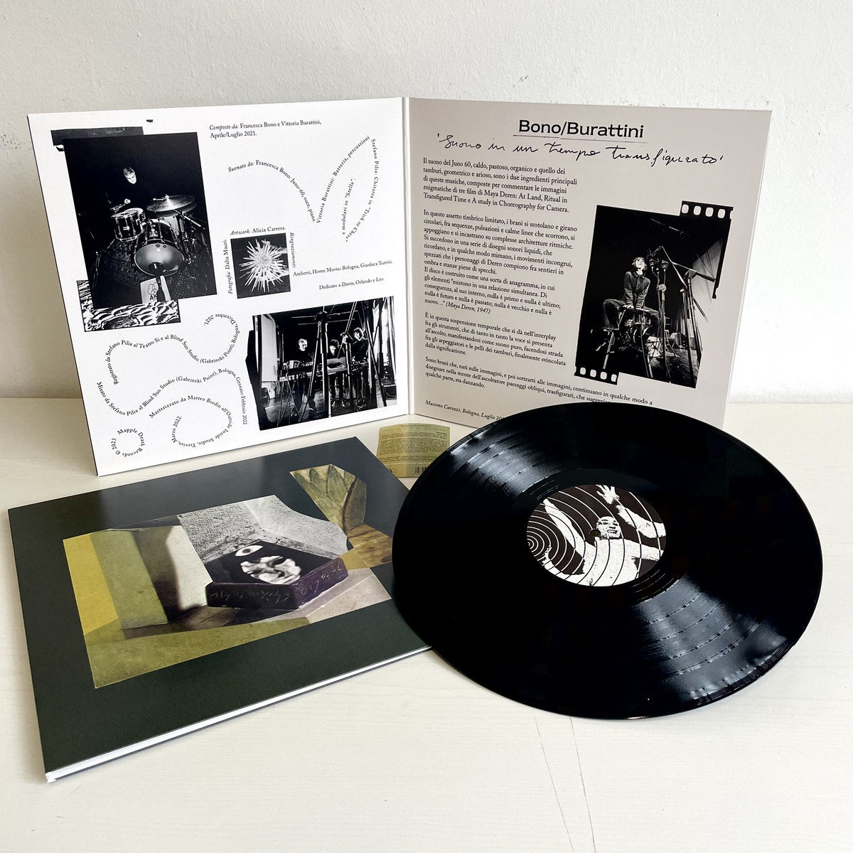 Inspired by three movies of avantgarde cinematographer Maya Deren (At Land, Ritual in Transfigured Time and A study in Choreography for Camera), Francesca Bono (vocalist, performer, founder of Ofeliadorme and member of the Donnacirco collective) and Vittoria Burattini (percussionist, multi-faceted drummer and member of influential Italian avant-rock band Massimo Volume) created a dense hypnotic transfixing collection of songs based upon the sole use of the Juno 60 synthesizer and the organic linear pulsating sound of a drum kit.