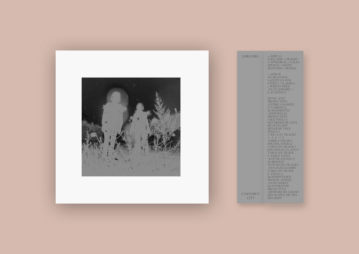 SabaSaba’s ‘Unknown City’ is released on LP/Digital by Maple Death. Music and production Andrea Marini e Gabriele Maggiorotto. Additional production Nick Foglia. Recorded by Paul Beauchamp. Mixed by Nick Foglia. Viola on track 2 - 3 - 6 - 7 -9 by Ambra Chiara Michelangeli. Voice on track 3 by Jonathan Clancy. Voice on track 4 by Emily Leon and Francesca Marongiu. Photos by Sophie - Anne Herin. Mastered by Brian Pyle. Artwork by Legno.
